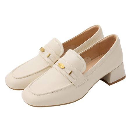 ホワイトコインローファー(4)/STACCATO(バロックジャパンリミテッド) 安定感のあるブロックヒールで長時間はいてもストレスフリー。やさしげなオフ白に似合うひかえめなメタルコインがつつましやかな品を約束。