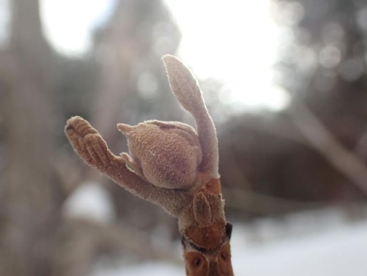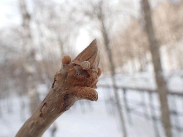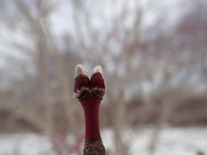 ハウチワカエデの冬芽。春が近くなると中からもふもふが出てきます