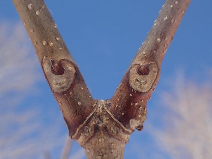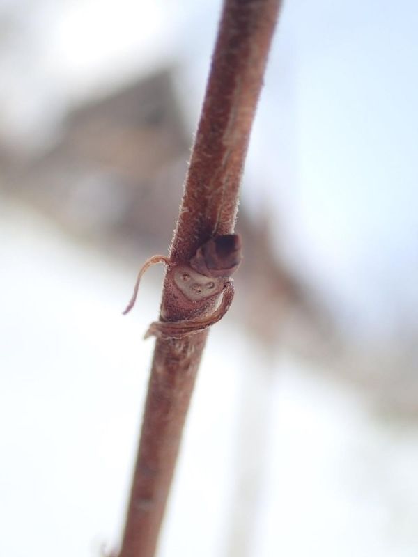 いきなり聞いたことがない言葉が出てきてビビっている方もいるかと思いますが、「冬芽」とは、春になると出てくる花や葉っぱが詰まったもの。「葉痕」とは、文字通り「葉っぱが落ちた跡」です。