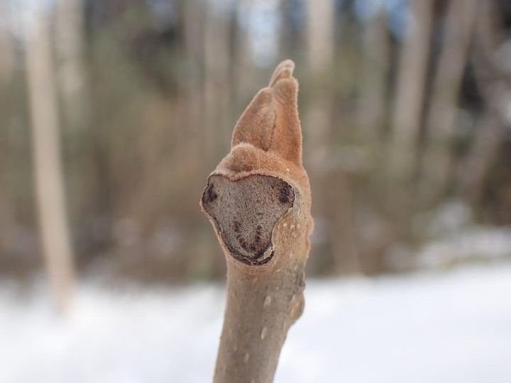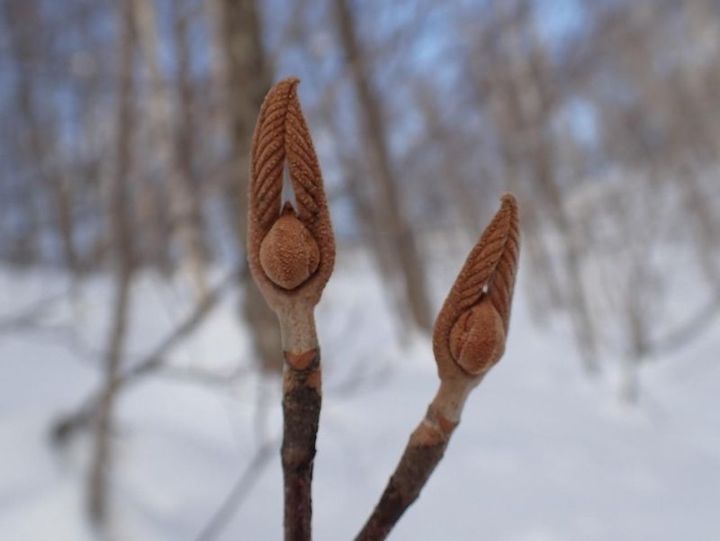 ここまで紹介したのは「葉っぱが落ちた跡=葉痕」ですが、冬の森でもう一つ楽しいのが「冬芽(ふゆめ)」です。