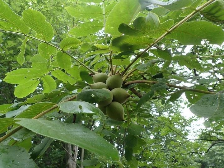 夏のオニグルミ。実の周りから伸びてる葉っぱが落ちた跡がサルやヒツジになります
