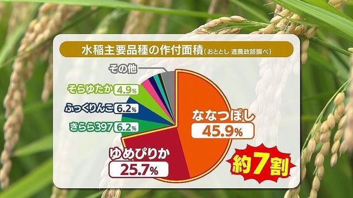 道内の生産量は、エースの「ななつぼし」と「ゆめぴりか」で全体の7割を占め、そのおいしさは全国に知られています。