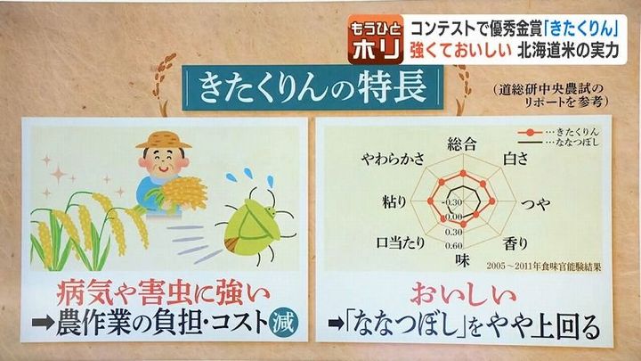 研究機関が行った食味試験では「ななつぼし」を やや上回る評価も。