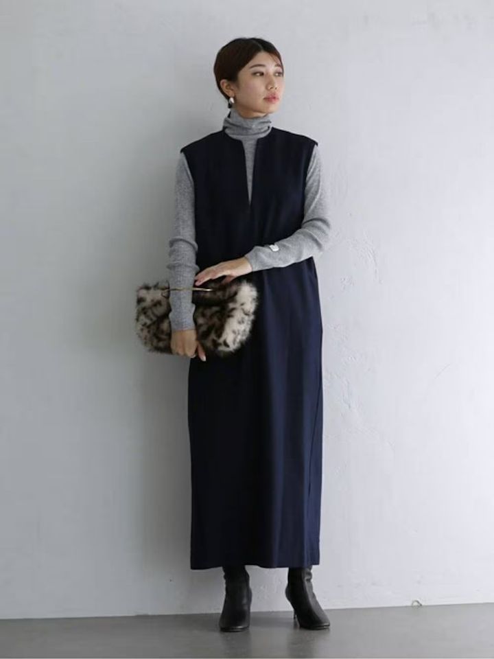 3. 1枚でも着回してもOK!50代に似合う冬のワンピースコーデ4選