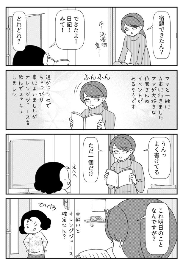3. 「宿題の日記、よく書けてるけど…」未来日記(精度高め)を書く娘【白目家の日常】/子育てしたら白目になりました