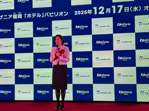 オープニングセレモニーではまず、株式会社 東横イン 代表執行役社長 黒田 麻衣子氏が登壇され、「「ホテル」パビリオンでの仕事体験を通じて、お客さまを笑顔にする喜びを感じていただき、一緒にホテルを作り上げるチームを感じて、目に見えない仲間を思う、そういった想像力もぜひ育んでいただけることを願っています。「ホテル」パビリオンで、多くのこども達の素敵な笑顔に出会えることを楽しみにしております。」と話されていました。