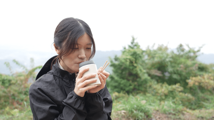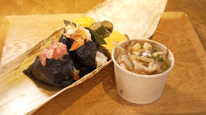 今回の「頂きメシ」は、高尾駅北口から歩いて30秒の「ミハラキッチン」で調達したおにぎり弁当。こちらは朝7時から営業しているので登山前に立ち寄るハイカーも多いのだそう。具材たっぷりのおにぎりは注文してその場で握ってもらいます。お味噌汁か温かい豚汁はスープジャーを持参すればテイクアウトも可能。最高の頂きメシ、頂きました!