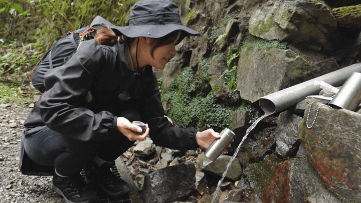 川の音を聞きながら登っていくと、次に現れたのは湧き水スポット。コーヒーソムリエの資格を持つ美山さん、休憩の時にコーヒを入れたいとのことで、こちらの水をゲット。さらに先へと進みます。