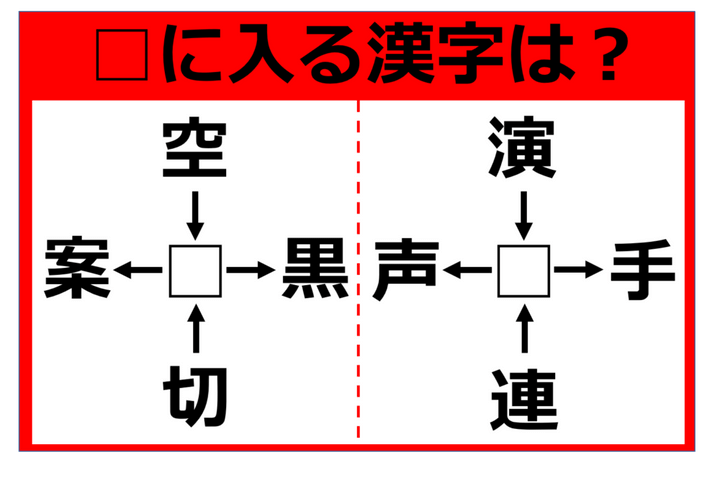 【漢字パズル】空□、□案、切□、□黒 この□に入る漢字を当ててください!