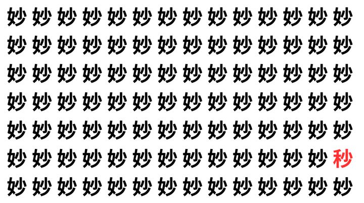 たくさんの「妙」の中に、よく似た別の漢字が1文字だけ隠れています。