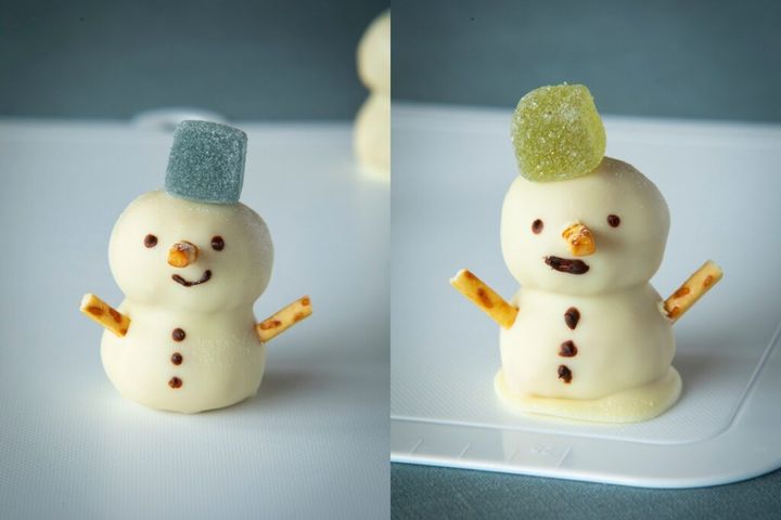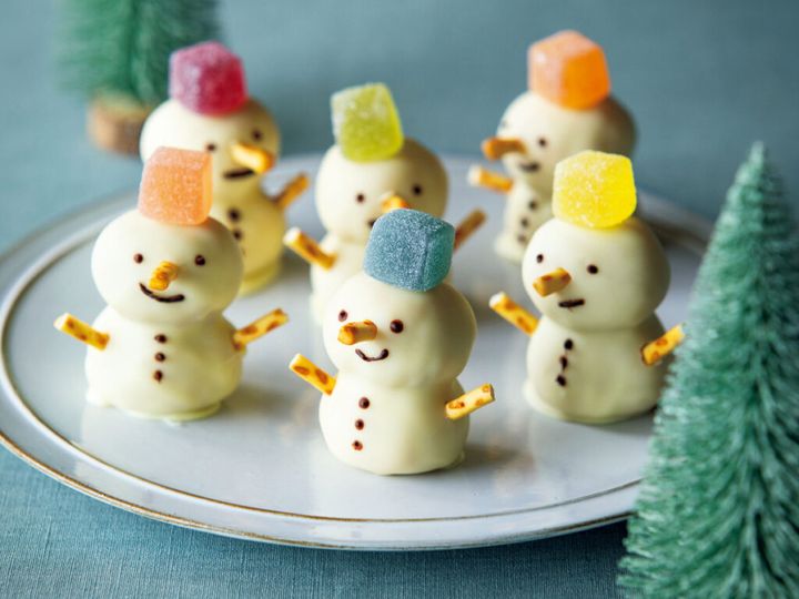 今の季節に作りたい、ちょこんと愛らしい雪だるまケーキ。白くてまあるいフォルムに、つぶらな瞳。カラフルなグミの帽子をのせた雪だるまたちが並ぶだけで、テーブルは一気にクリスマスムードに包まれます。