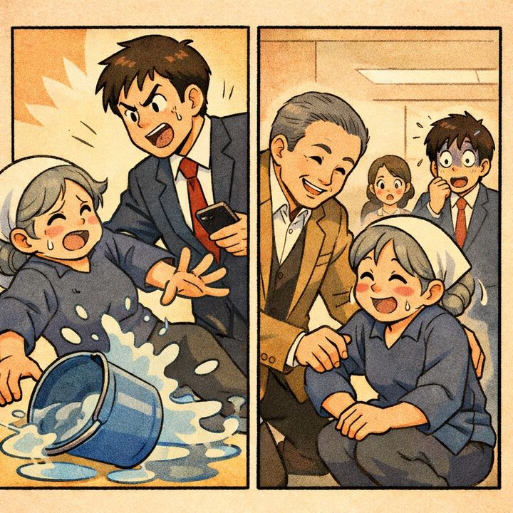 「ババア邪魔だよ!」と清掃員を突き飛ばしたエリート社員→清掃員が上司の身内と知り顔面蒼白に【短編小説】