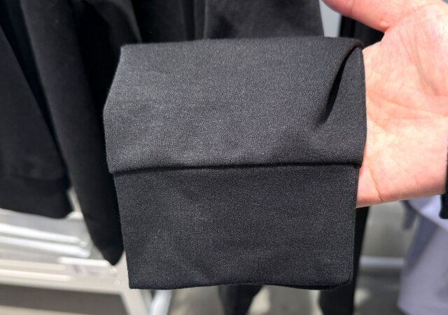 袖口のリブで腕まくりをしても袖が落ちてこないので、家事や身支度がしやすいのも高ポイント。しっかりとした生地感になって、ワンマイルウェアとしてちょっとそこまで着て行くのにもいい!