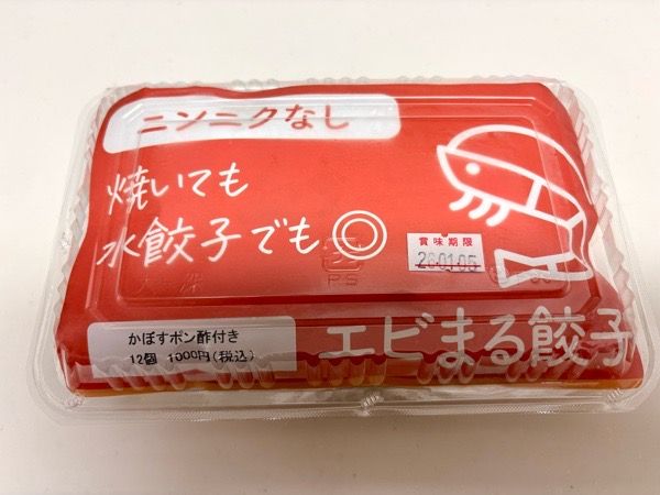 パリっと焼き上がった「エビまる餃子」の完成!かぼすポン酢ダレでさわやかにいただきました♪ぷりぷり食感のエビがたっぷりで子どもも喜びそうです。水餃子として鍋にも合うと思います。