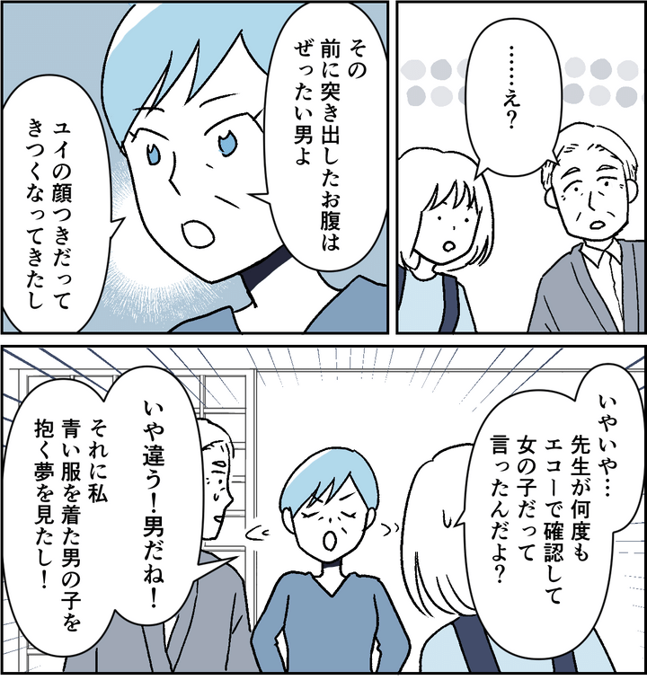 ところが、その横で母が突然口を挟み、「何言ってるの、男よ!」と言い出しました。私と父は思わず顔を見合わせ、「……え?」という空気になりました。
