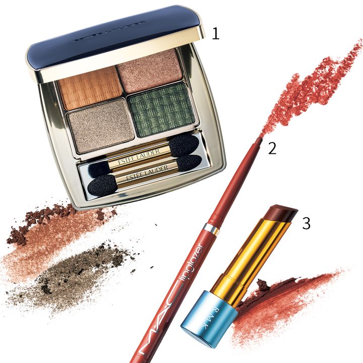 左上:お洒落な配色のブラウンパレット。ひと塗りで鮮やかに発色。1.ザ エッセンシャル アイシャドウ クアッド マネー ムーブス ¥9,130(エスティ ローダー)