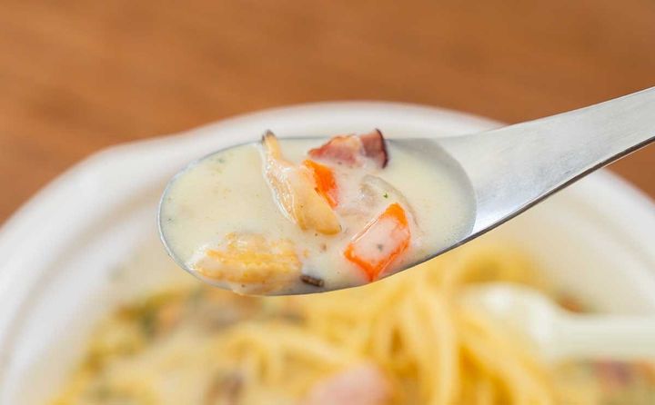 セブン-イレブンでは、毎年のようにクラムチャウダースープとパスタを合わせた商品が登場しているので、本商品が発売されることを楽しみに待っていた方もいるのではないでしょうか(筆者は待っていました! この商品はセブンの冬の楽しみのひとつです)。