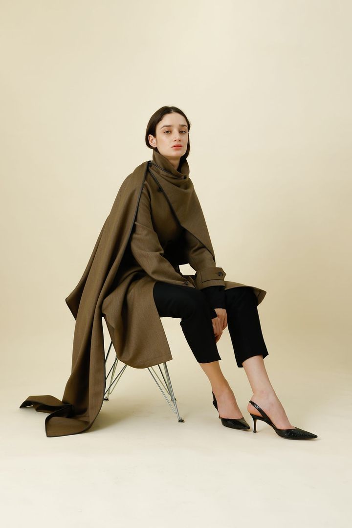 2023年の誕生以来、「サードトリオンフ」が貫いているのは、徹底したメイド・イン・ジャパンへのこだわりと時代を超えたミニマリズム。ブランドの核となるのは、世界有数のサプライヤーから厳選された最高級カシミヤをはじめとするぜいたくなファブリックだ。そこに、イギリス人スタイリストによる洗練された感性がデザインに吹き込まれ、パターンから縫製、仕上げにいたるまで、日本の熟練職人が手掛けることで、一着の「作品」へと昇華。一切の妥協を排した手仕事が、袖を通した瞬間に背筋が伸びるような、芯のあるたたずまいを生み出している。