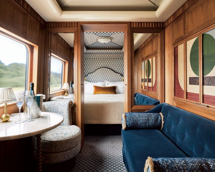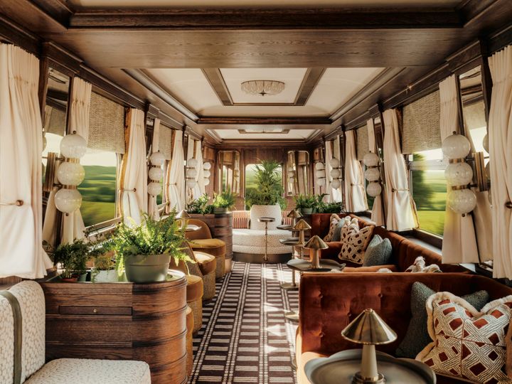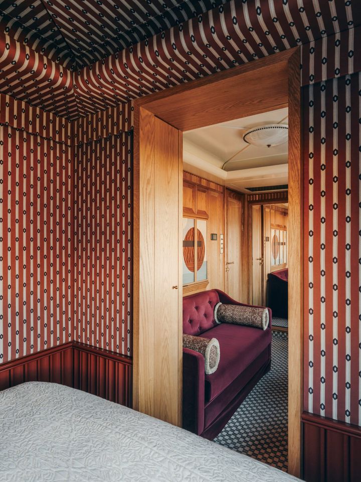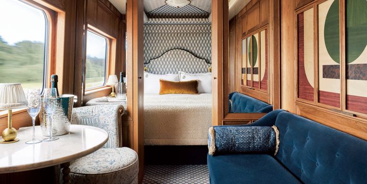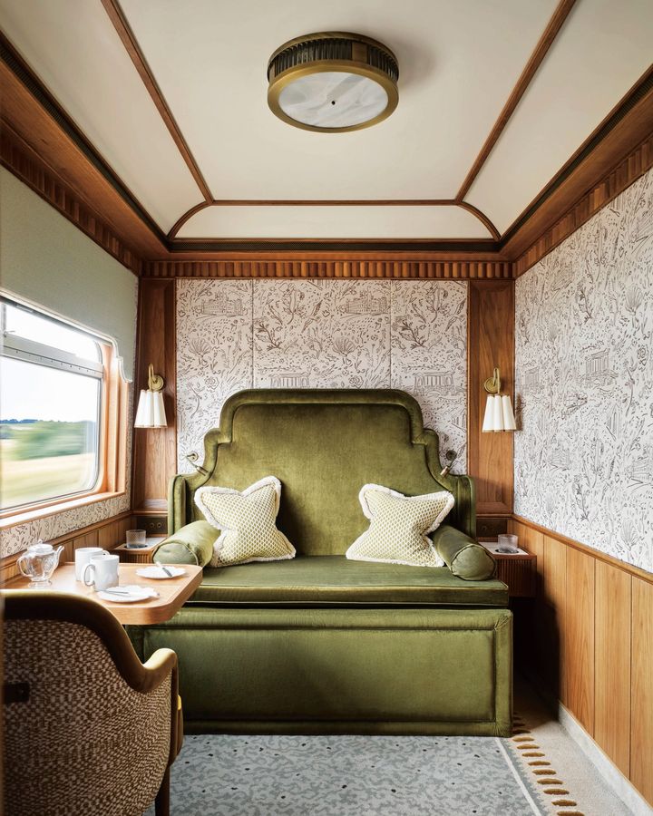 世界各国でホテルやクルーズ、豪華列車を運営するベルモンドより、ロンドンからウェールズ、コーンウォール、湖水地方を巡る寝台列車「ブリタニック エクスプローラー」が誕生。インテリアを手掛けたデザイン事務所、アルビオンノードのカミラ・クラークは「インスピレーションは鉄道の旅そのもののロマン。ゆっくりとした旅のリズム、車窓から景色が広がっていく劇場のような体験です。インテリアもその延長上にありたいと考えました」と語る。