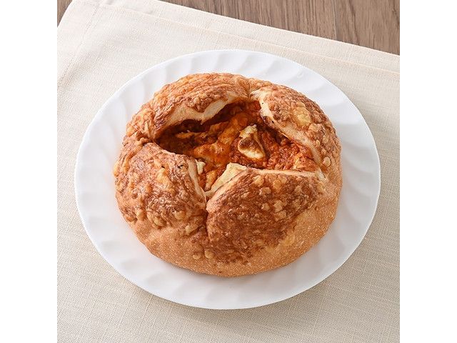フランスパン生地に、ミートソースとチーズクリームを包み、クラッシュチーズをトッピングして焼き上げた、ボリュームのある惣菜パンです。