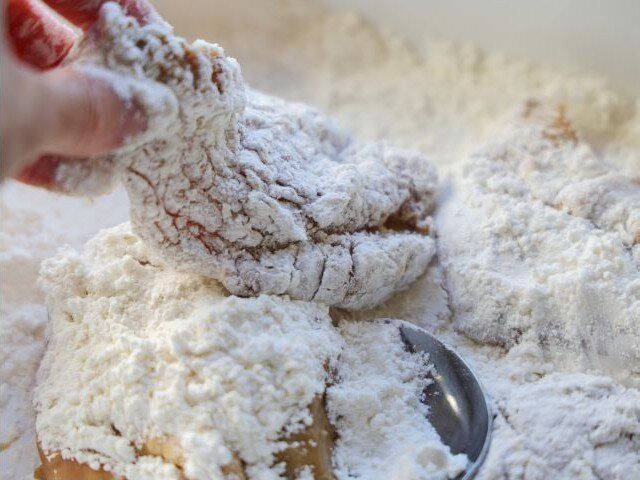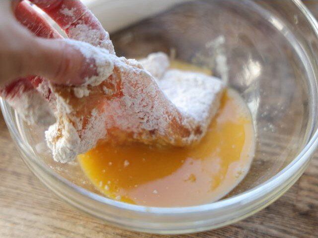 ⑦ 残しておいた④にくぐらせ、再度、粉を付ける。