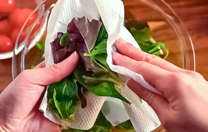 水分が残っているとドレッシングをかけた時に味が薄まってしまうので、できるだけしっかりふき取るようにしましょう。
