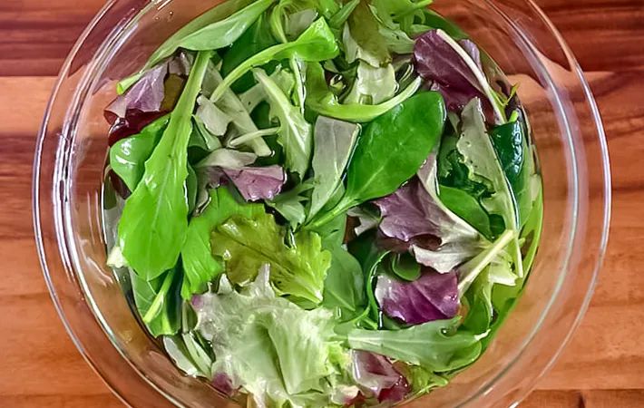 ベビーリーフは水で洗って冷水に10分ほどさらします。