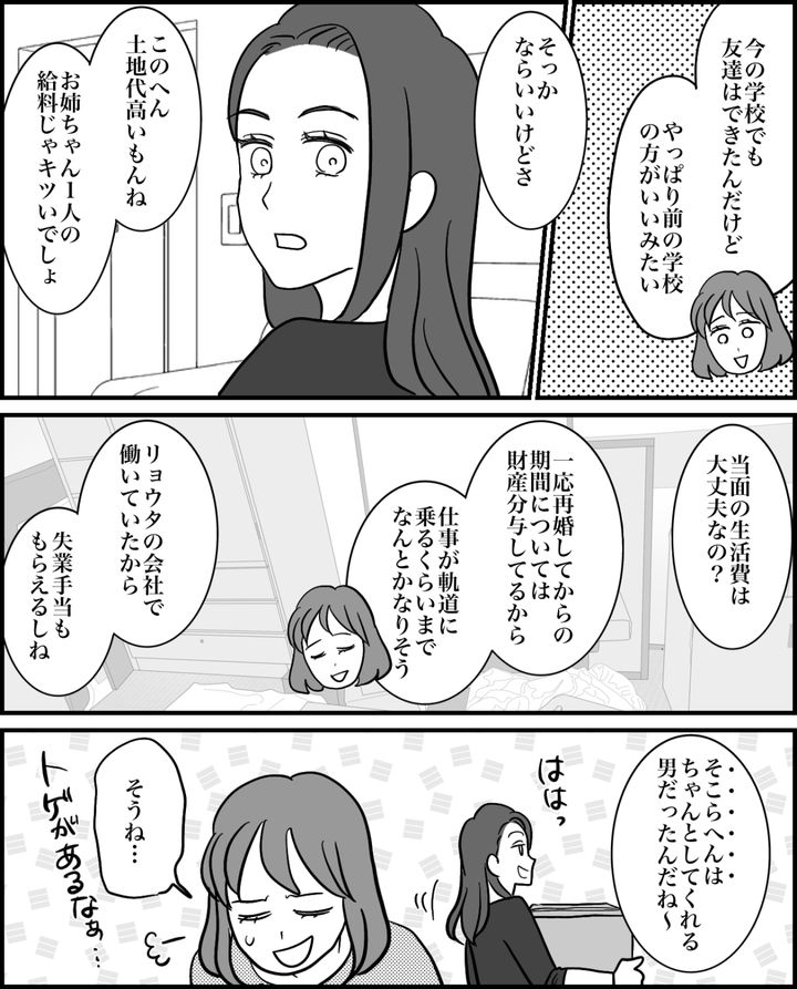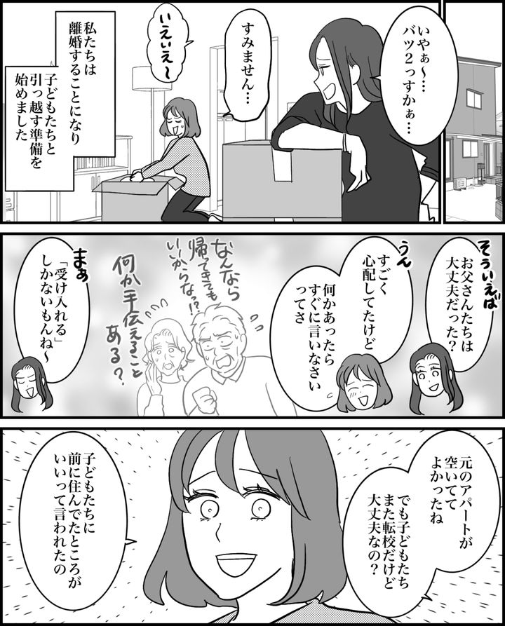私たち親子は再婚前に住んでいたアパートに戻ることにしました。離婚するにあたっては新しく仕事も探さなければいけませんでした。ただリョウタができるかぎりのことをしてくれたので、すぐに金銭的に困ることはなさそうです。