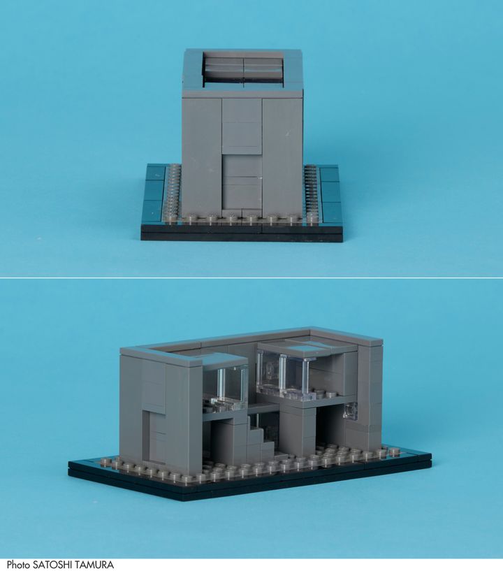 最初に挑戦したのは安藤忠雄・設計の「住吉の長屋」だ。レゴで建物をつくる時、外観を似せてつくるが、「住吉の長屋」は家の中に庭を設けた点が特徴なので内側もつくりたいと考え、壁の一部を取り外せるようにしてつくった。