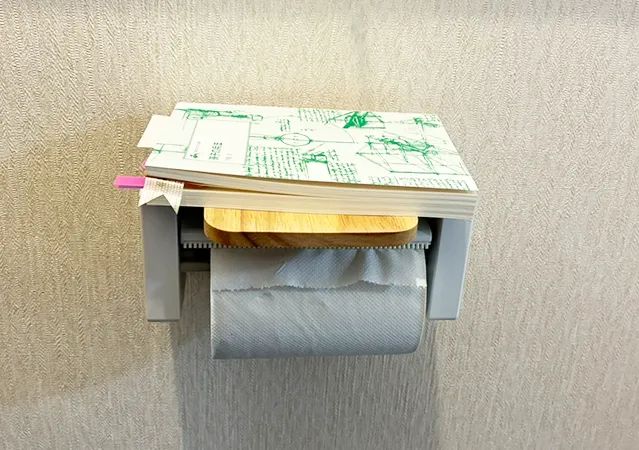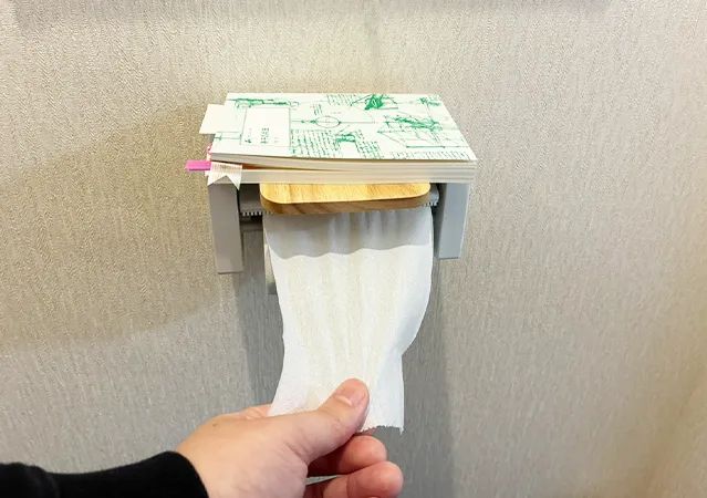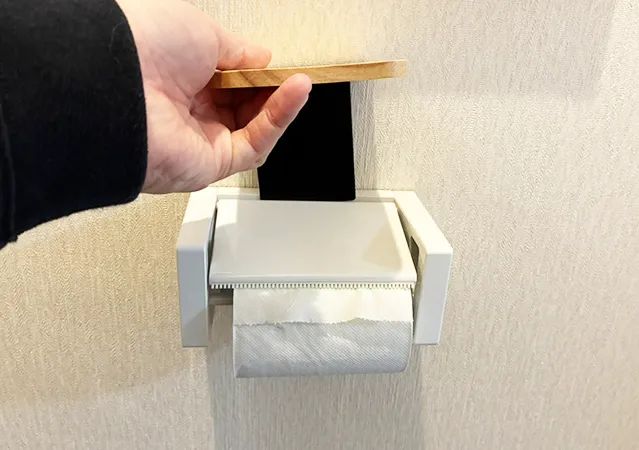 こうすることでペーパーホルダーの上に、本やスマホなどの小物が置けるようになります。