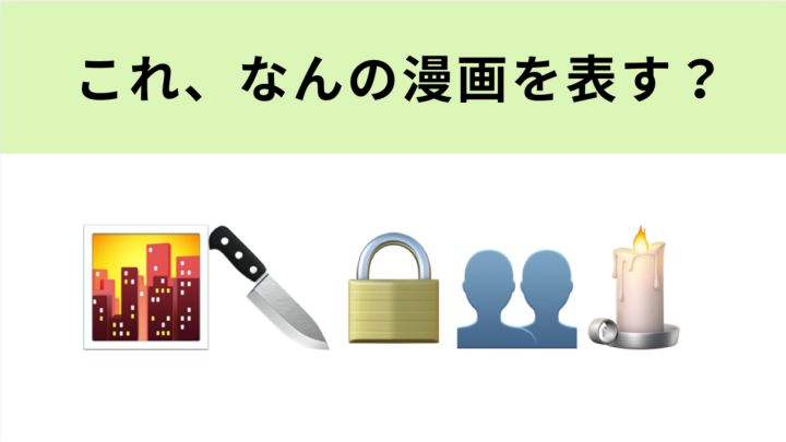 🌆🔪🔒👥🕯️」が表す漫画は一体なんでしょうか?