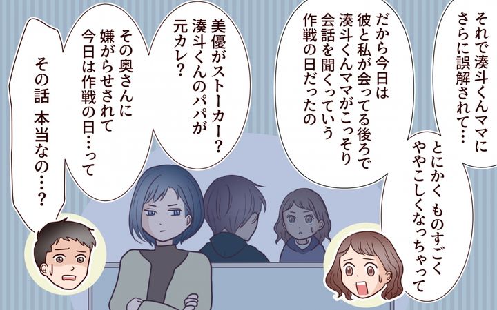 保育園で元カレに再会し、彼の妻から誤解されてしまった美優。元カレの本性をあぶり出すために美優は彼の妻と一芝居打ち、元カレ夫婦は離婚へ向けて動き出す。これですべて解決…かと思いきや、美優の夫まで何か誤解をしているようで「今日誰と会ってた?」と問い詰められて…。