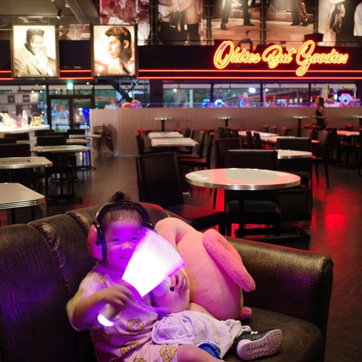 夜ごはんは予約していたシギラ内の"ファンキーフラミンゴ"へ。 ライブがあるので最前列で推しグッズも借りながら楽しみました。子どもが一番凝視してました♪ 音が大きいのでイヤホンの貸し出しもあって、席も自由に選ぶスタイルでごはんはポテトやステーキなど、アメリカンスタイルでした。アイスもあり! 音楽やダンス好きな方におすすめですが、沖縄民謡など聴きたい方は沖縄居酒屋の方がおすすめです。