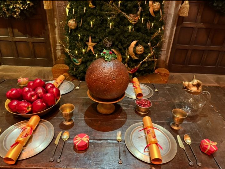 他にも、クリスマスカラーのケーキやツリー型のカップケーキ、具材たっぷりのピザやチキンなど、しっかり食べ応えのあるラインナップでした!どれもハリーポッターの世界観に入り込める色づかいで、食事そのものが“作品の中のワンシーン”のように感じられるのもうれしいですよね。