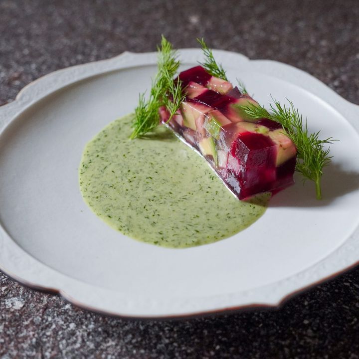 ビーツとアボカドの色の組み合わせが目にも美味しい、ビーツとアボカドのテリーヌのレシピです。キラキラしたビジュアルはおもてなしにもぴったり! 西洋わさびの辛みを効かせたディルのソースがアクセントになって、全体を引き立てます。