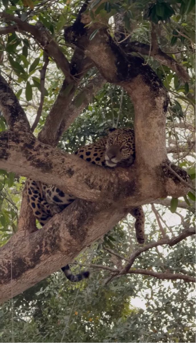 木に登って一休みしているジャガーを発見した撮影者さん。