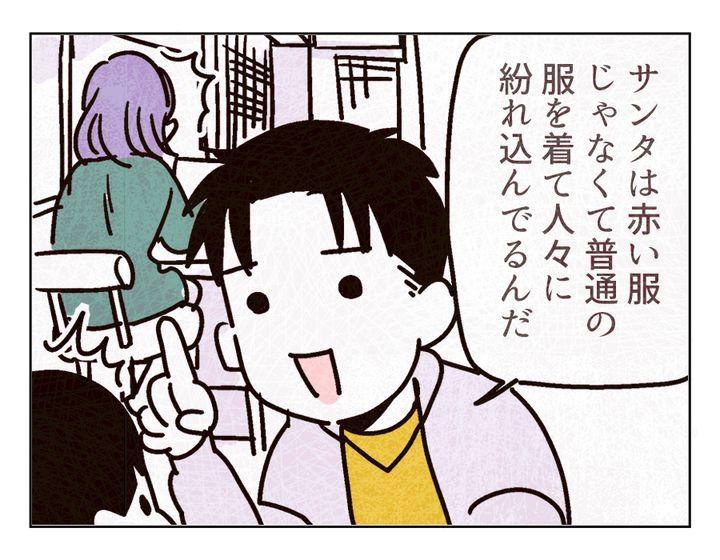 今日このときから、スズキ家のサンタさんは「赤い服じゃない」ことになりました。サンタは普通の服を着て、人々に紛れ込んでいる……夢のある話です。でも、大丈夫でしょうか……。言ったことを忘れないように、今後気をつけたいところですね!