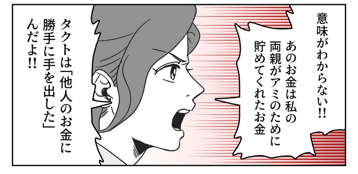 しかし夫が勝手に使い込んだお金は、私の両親が娘のために貯めてくれたお金です。「うちのお金」ではありません。