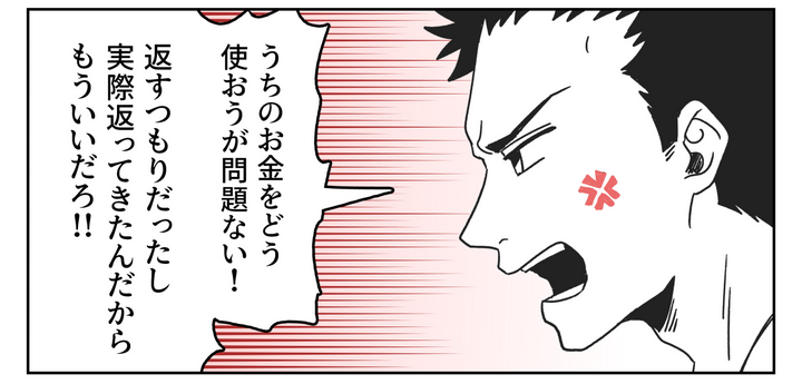 数日後、夫はキレました。「あのお金はもともとうちの家計に入っていたものだしどう使おうが問題ない」「全額返ってきたんだからいいだろ」と言います。これが夫の本心なのでしょう。