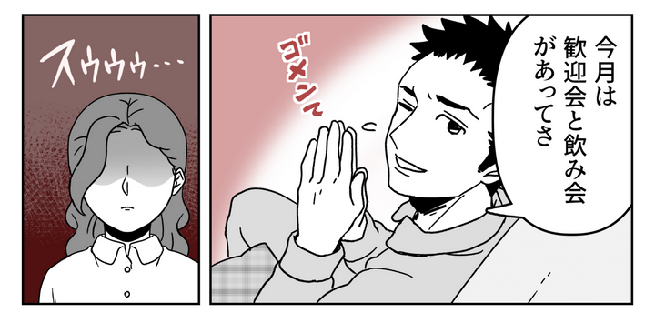 夫は両手を合わせて謝ってみせますが、私は急速に夫への気持ちが冷めていくのを感じます。