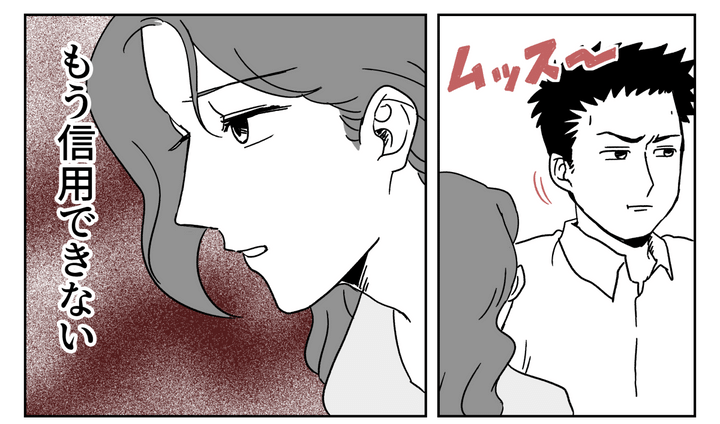 夫はムッとした表情で黙っています。私は「もうこの人を信用できない」と強く思いました。