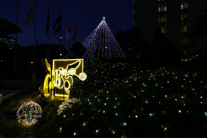 エントランス前には、135周年を祝うイルミネーションのオブジェも。こちらはあたたかみのあるゴールドを基調としており、日比谷のフェスティブシーズンを大いに盛り上げています。