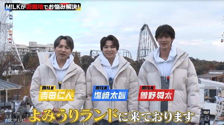 紅白初出場M!LK塩﨑太智&曽野舜太&吉田仁人と遊園地デート気分…ファン「漢気かっこいい」「キュンとしました」「かわいそかわいいの代表すぎて滅」