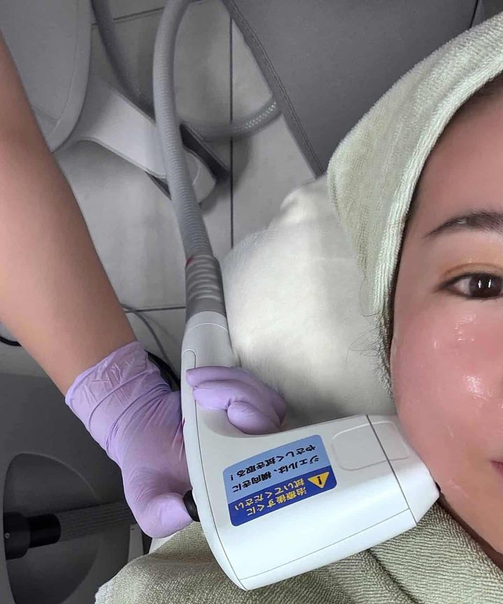 たっぷり麻酔ジェルを塗った後、このような機械で全顔を丁寧に施術。