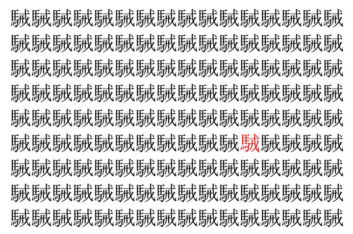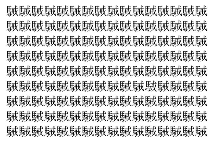 2. 【脳トレ】「駴」の中に紛れて1つ違う文字がある!?あなたは何秒で探し出せるかな??【違う文字を探せ!】
