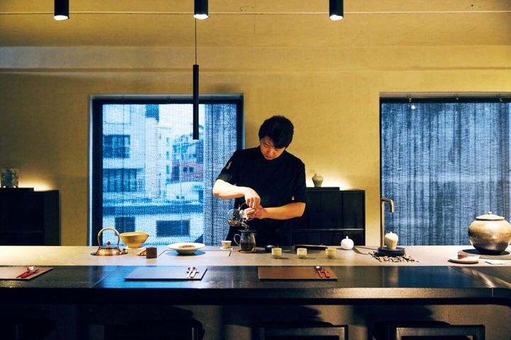 2014年に開店。韓国河東産の発酵茶や中国雲南省のプーアル茶、福建省の岩茶など、店内で飲めるお茶のメニュー数の多さは驚くほど。個室もあり、教室も開いている。地下1階にはギャラリーがあり、器作家の個展なども開催。茶器やオリジナル茶も販売している。
