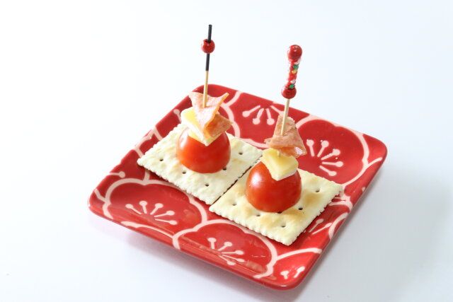 お祝いメニューの盛り付けにぴったりな『紅白梅 角皿』もおすすめ!