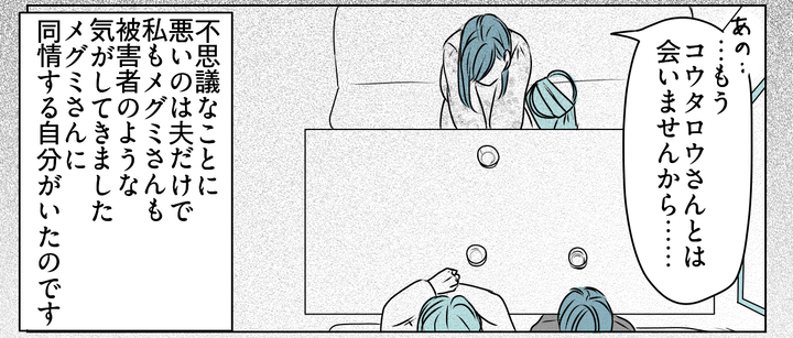 同時に、妻子があるのを知りながらお付き合いをしているメグミさんを、夫の浮気の被害者のように感じてしまう自分もいました。