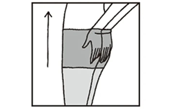 次に、足首から膝、もも、股下へと引き上げます。左右の脚を交互に少しずつ上げるのがコツです。