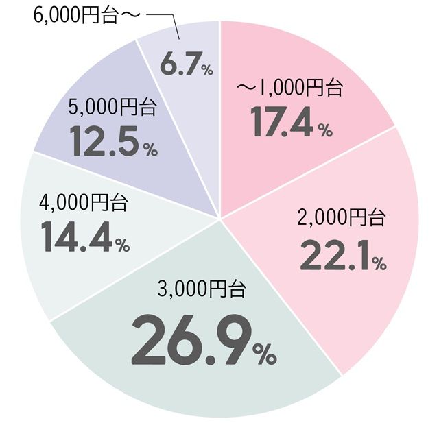 20〜30代の女性の場合、約半数の人が2,000〜3,000円の価格帯で本命へのプレゼントを検討していることが分かります。